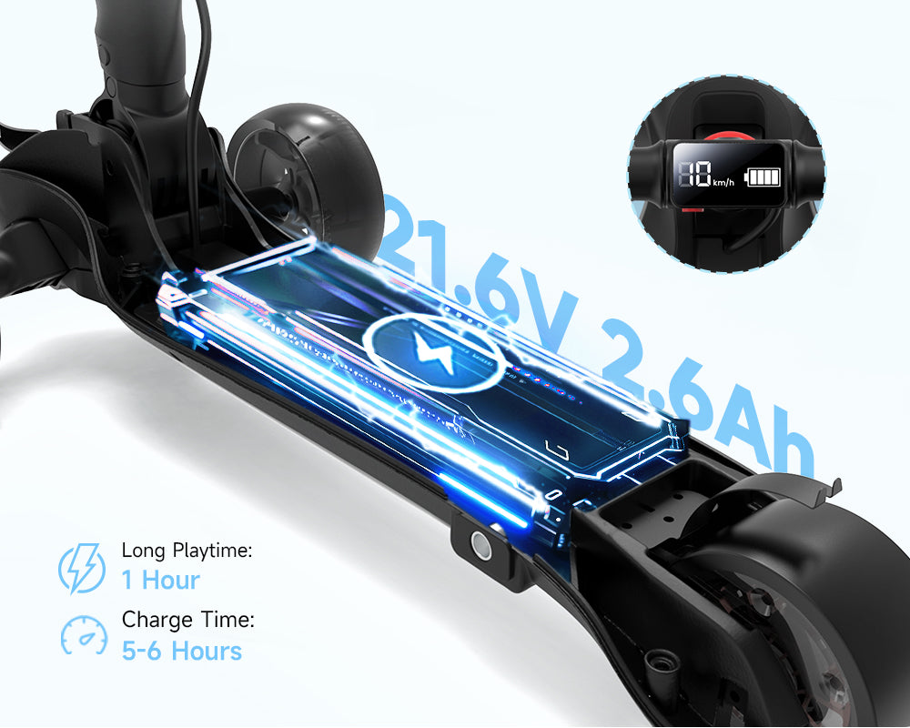 Enjoy longer rides with our scooter's advanced BMS-equipped battery, offering a playtime of up to 60-90 min on a single charge. The Battery Management System (BMS) ensures optimal performance and safety by monitoring and managing the battery's health. With a charge time of just 5-6 hours, you can quickly get back on the road for more fun and adventure.