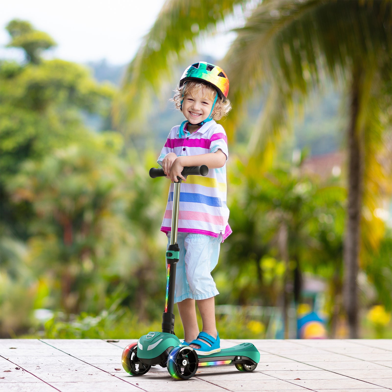 As your child rides, the wheels burst into a rainbow of colors, making every journey a vibrant spectacle.