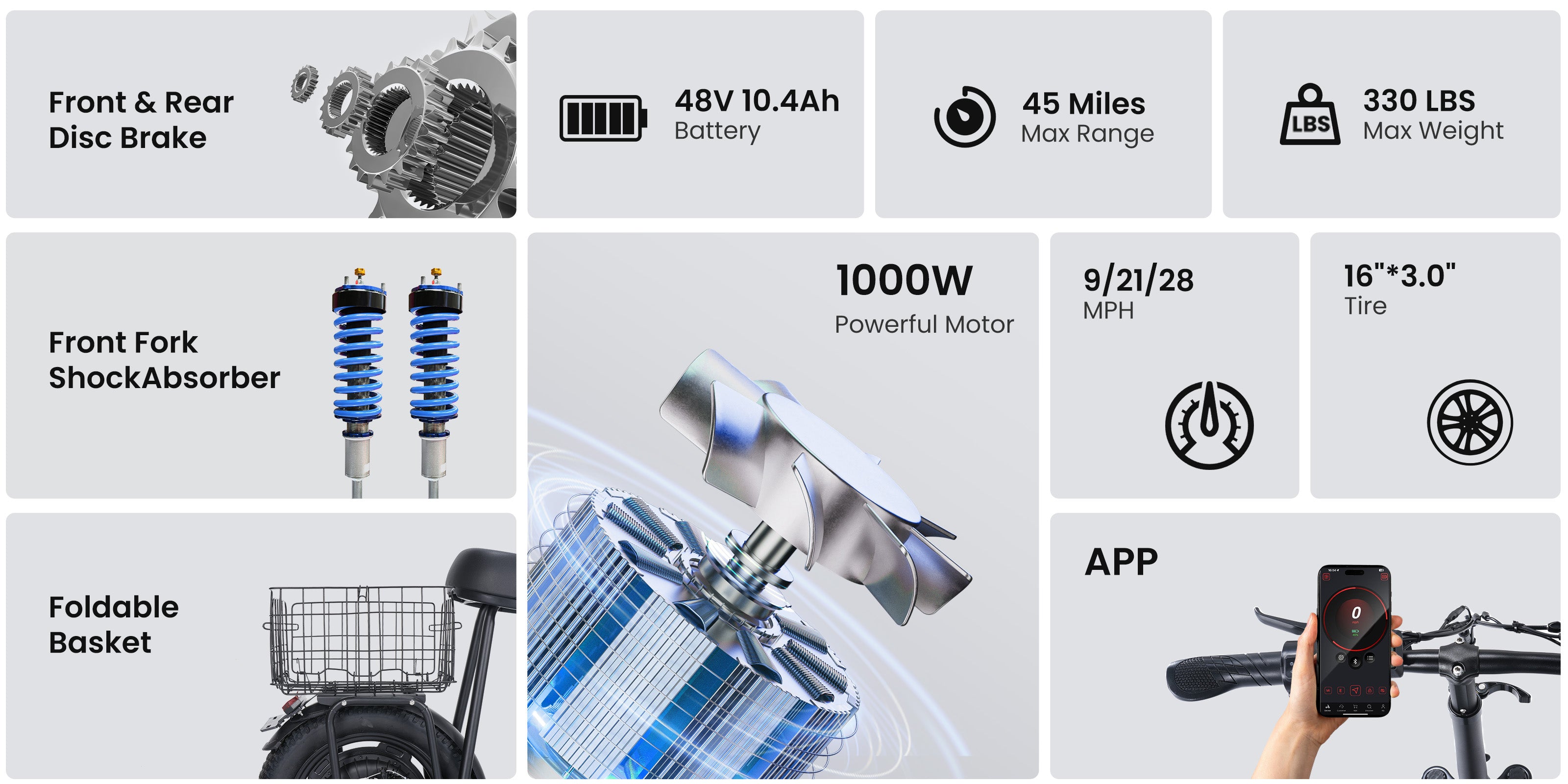 F7 Electric Scooter 1000W with Seat 28 MPH & 45 Miles