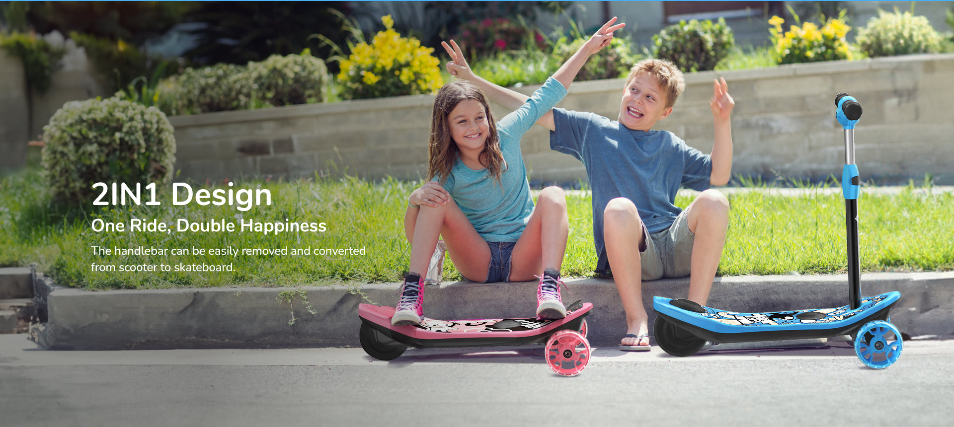 2in1 design,one ride,double happiness. the handlebar can be easily removed and converted from scooter to skateboard.